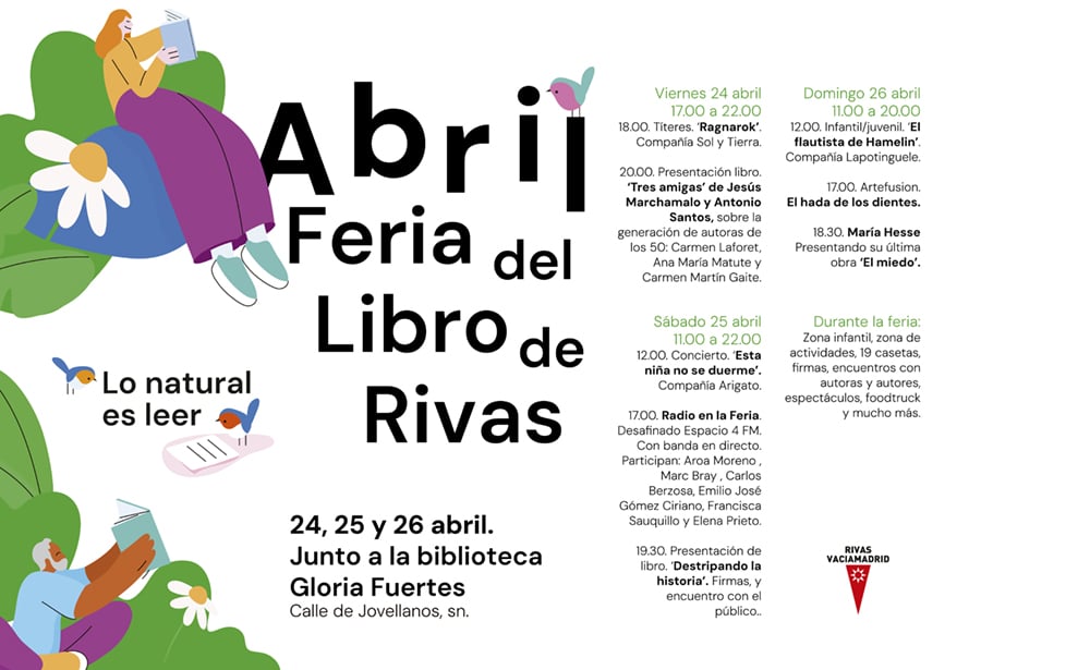 La Feria del Libro 2026 de Rivas Vaciamadrid volverá a celebrarse este año junto a la biblioteca Gloria Fuertes del 24 al 26 de abril. La carpa y las casetas acogerán actuaciones y presentaciones literarias para celebrar la cultura en torno al mundo del libro.